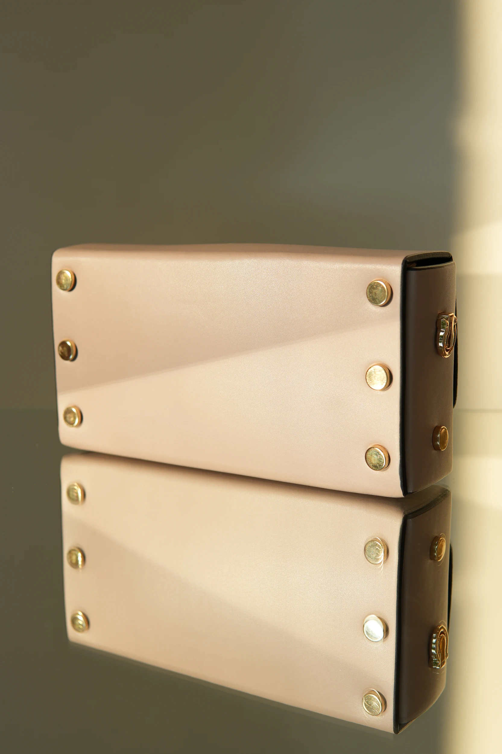 Клатч выполнен из натуральной итальянской кожи и закрывается на удобную магнитную застёжку. Его можно носить в руках или повесить на длинную цепочку, идущую в комплекте.