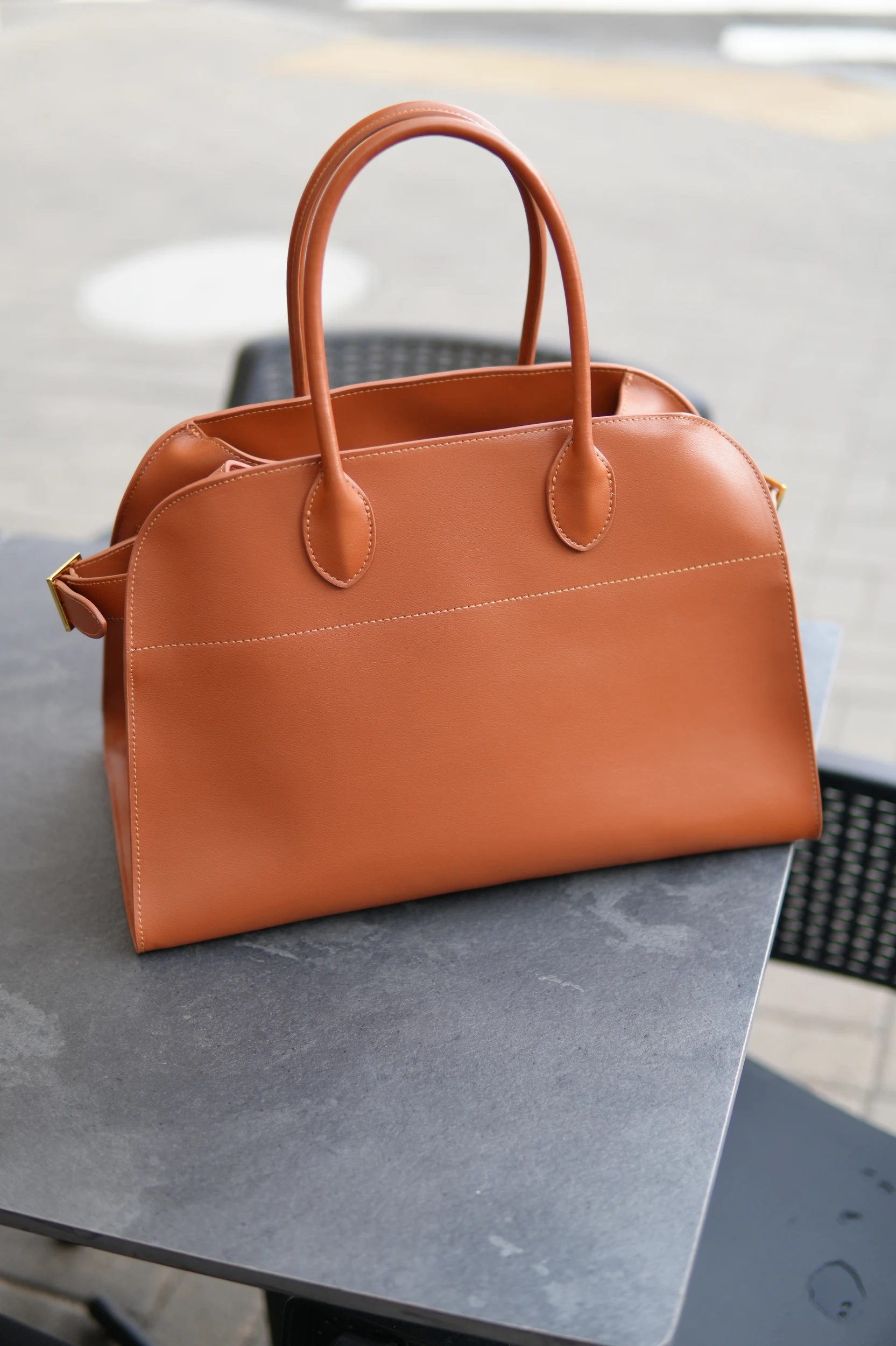 Сумка Tote из гладкой натуральной итальянской кожи, оснащена съемным плечевым ремнем с регулировкой, а внутри достаточно места для бумажника, косметички, бутылки с водой и планшета.