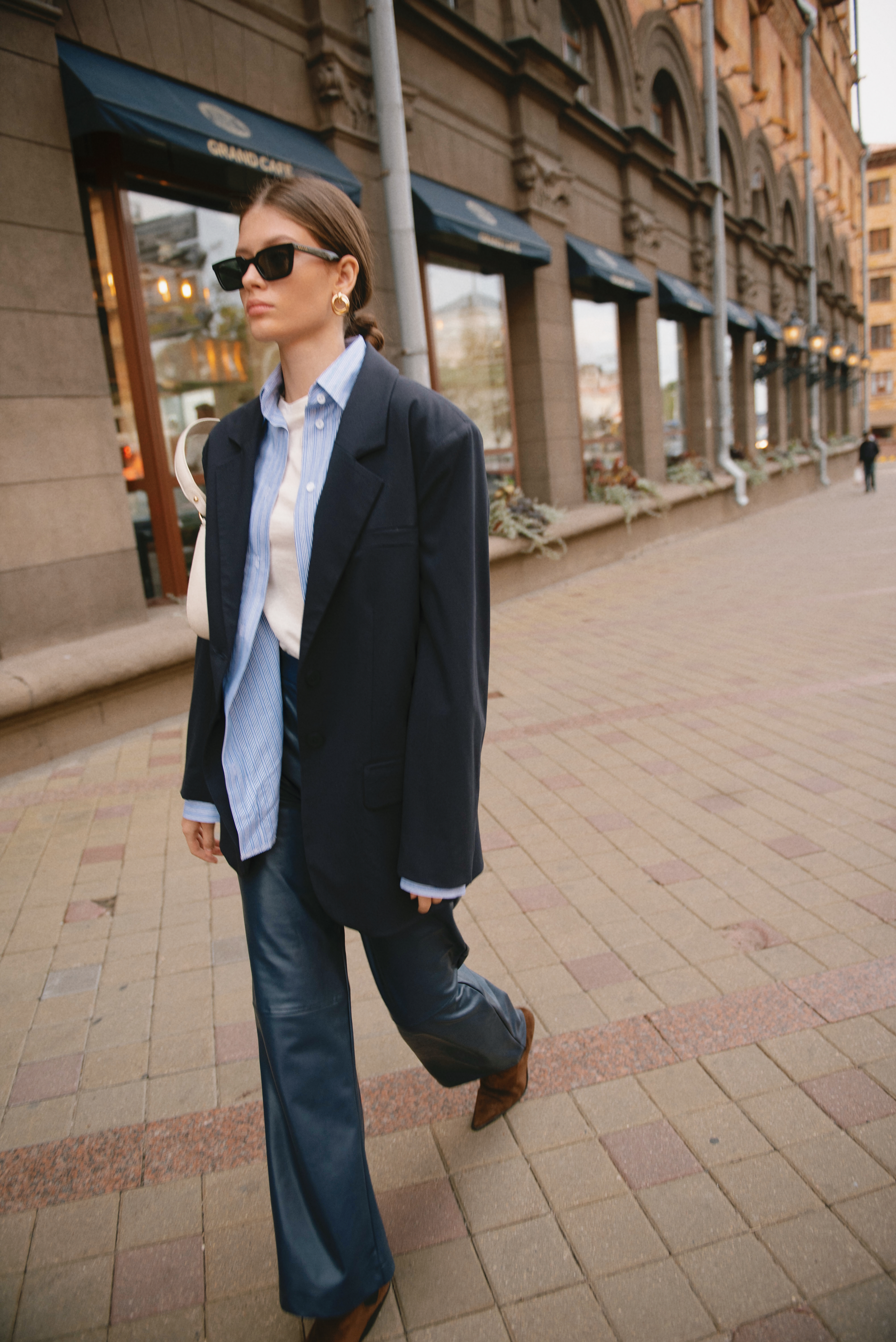 Идеальный синий жакет из премиального итальянского плотного шлифованного хлопка