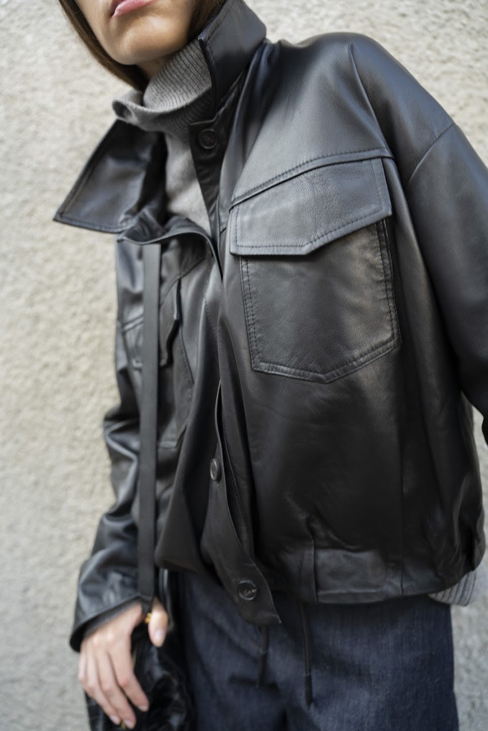 Куртка на пуговицах из натуральной кожи
