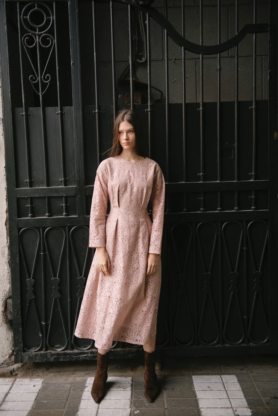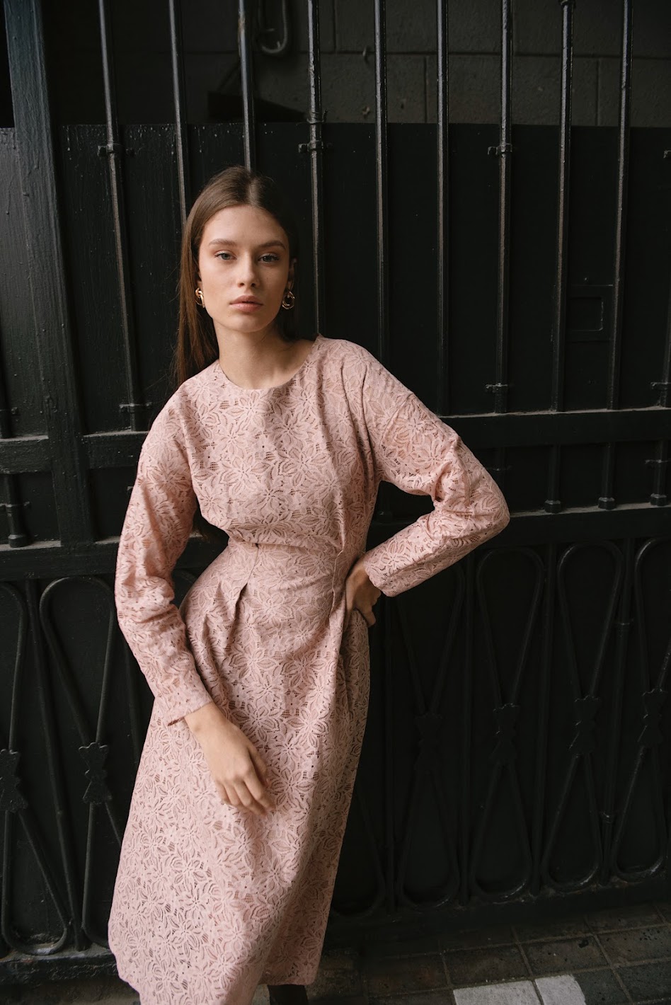 Платье из итальянского кружева цвета пыльной розы на основе хлопка в двух вариациях длины. Приталенный силуэт, защипы на талии, подиумный полупрозрачный эффект кружева - тренд сезона 24/25. И две самые актуальные длины сезона - мини и макси.