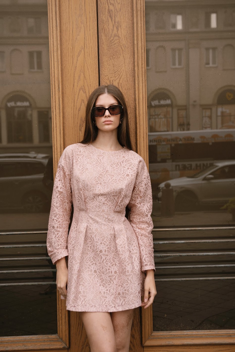 Платье из итальянского кружева цвета пыльной розы на основе хлопка в двух вариациях длины. Приталенный силуэт, защипы на талии, подиумный полупрозрачный эффект кружева - тренд сезона 24/25. И две самые актуальные длины сезона - мини и макси.