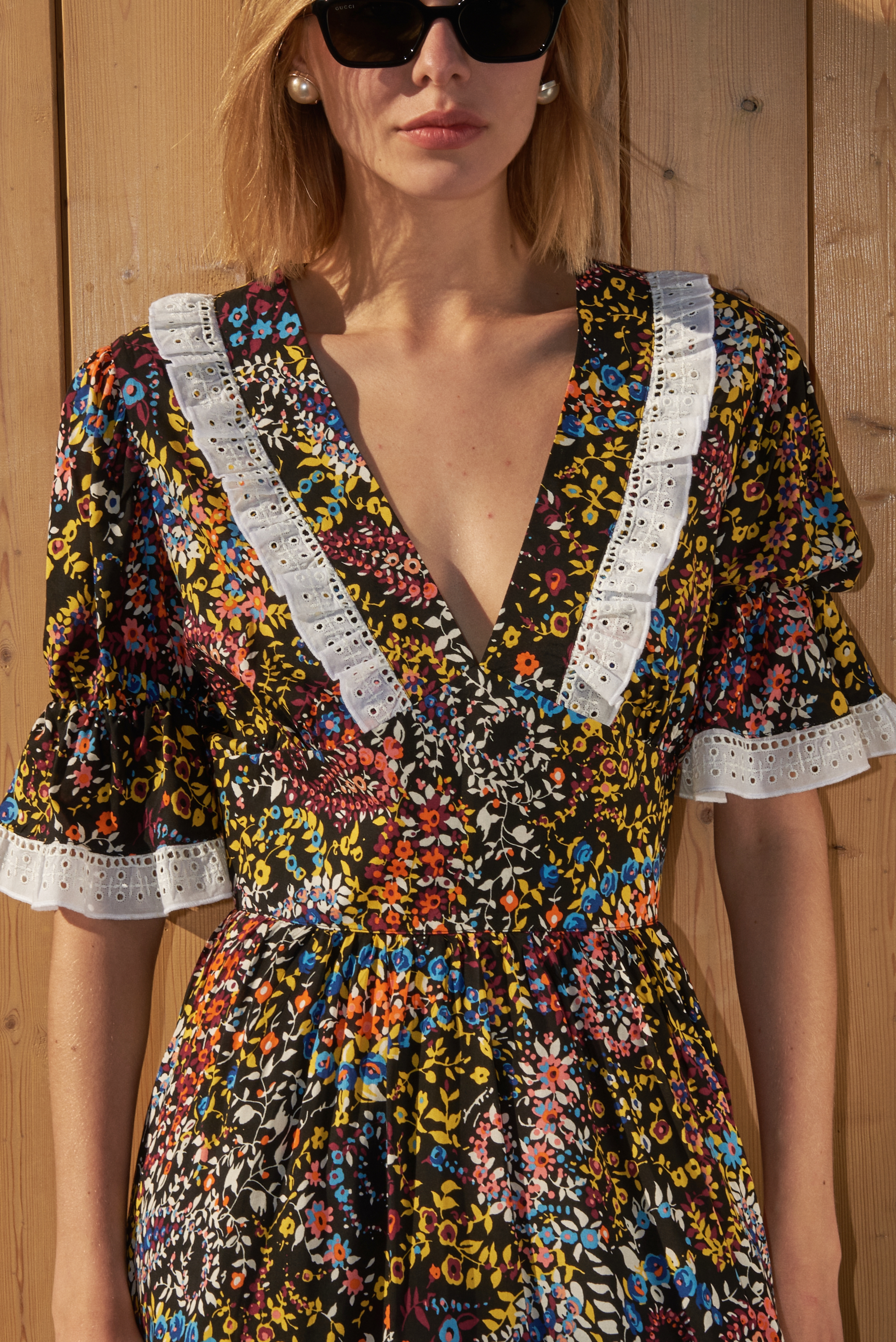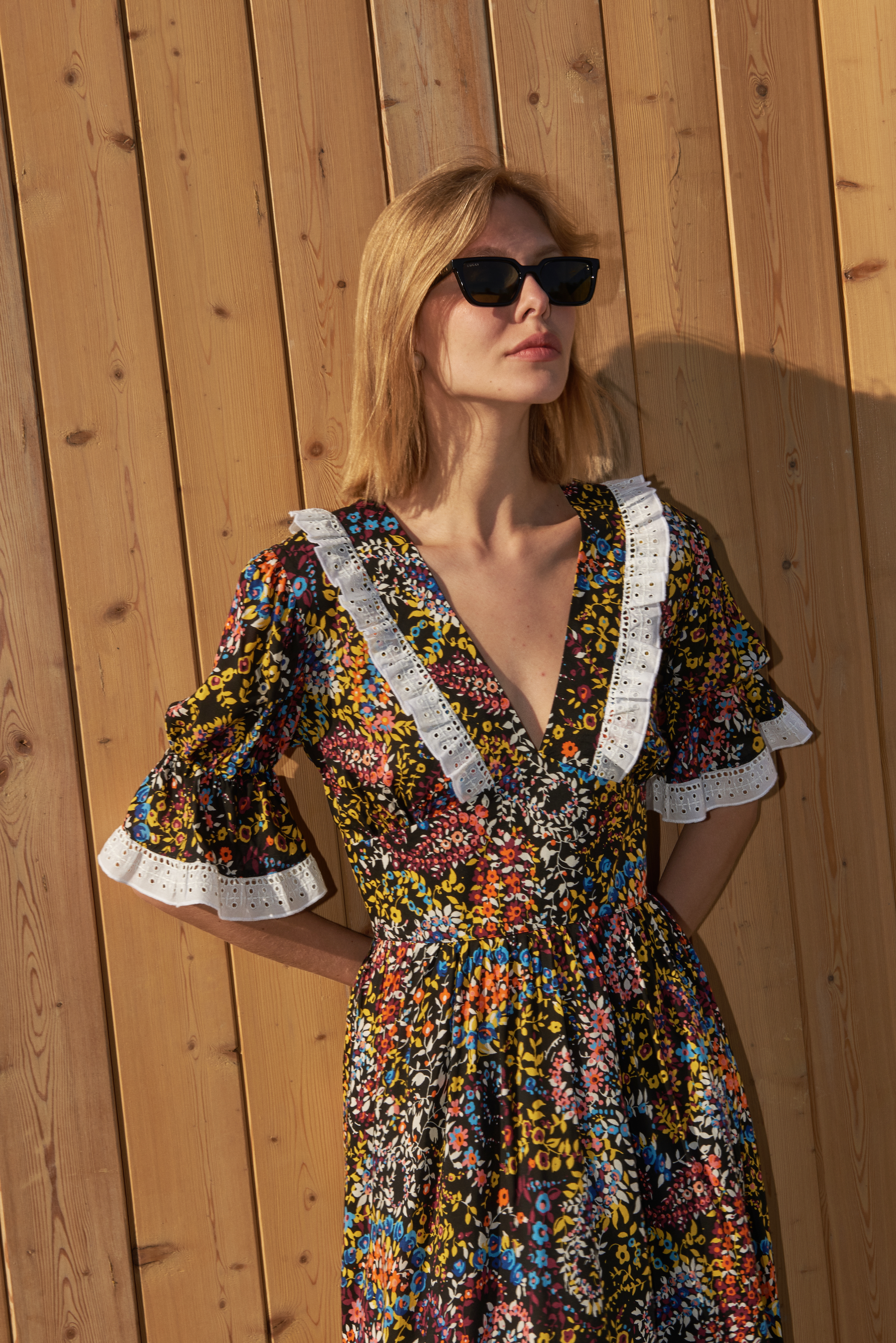 Россыпь эксклюзивного цветочного принта на невесомом итальянском хлопке в любимой модели платья, декорированной шитьем.