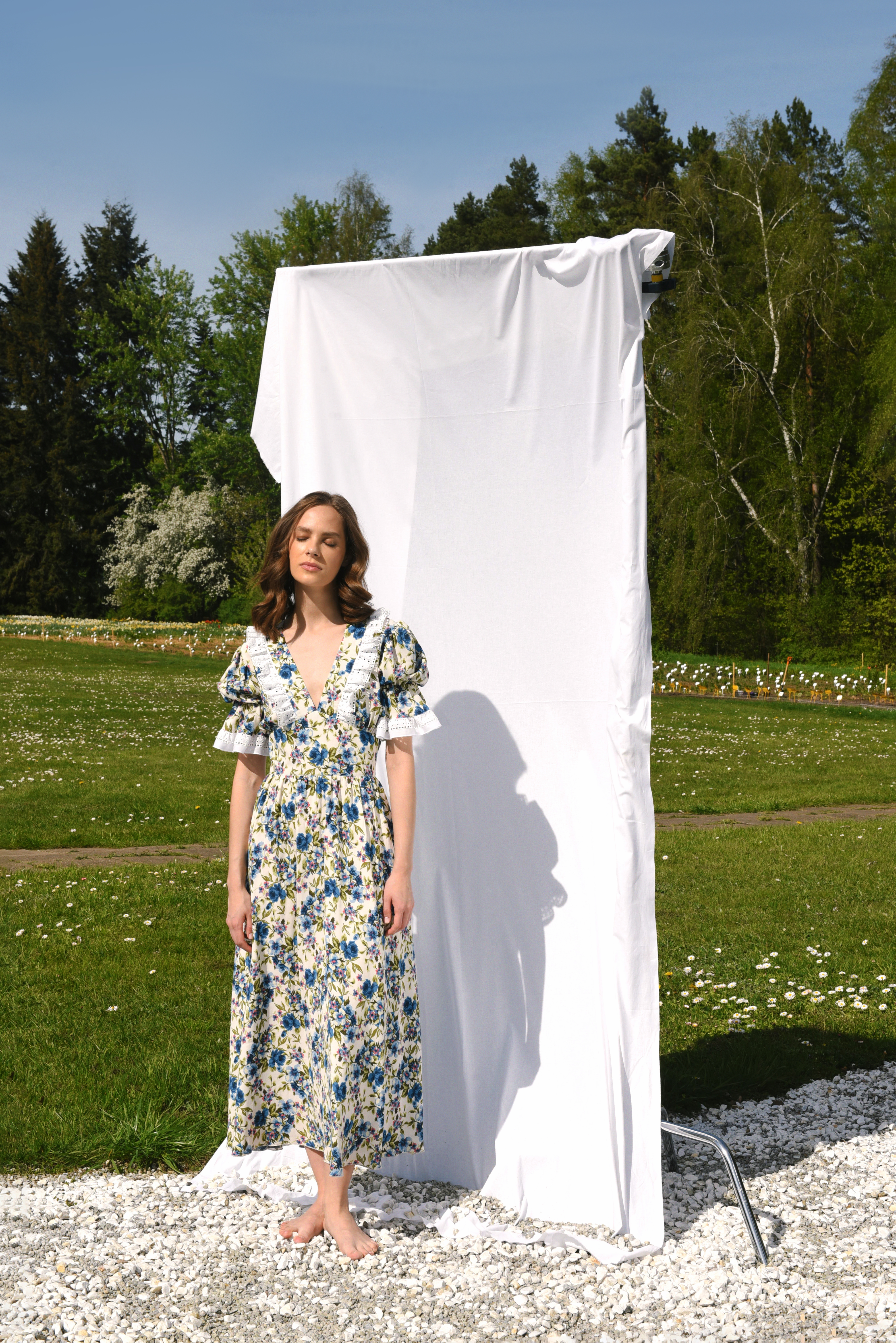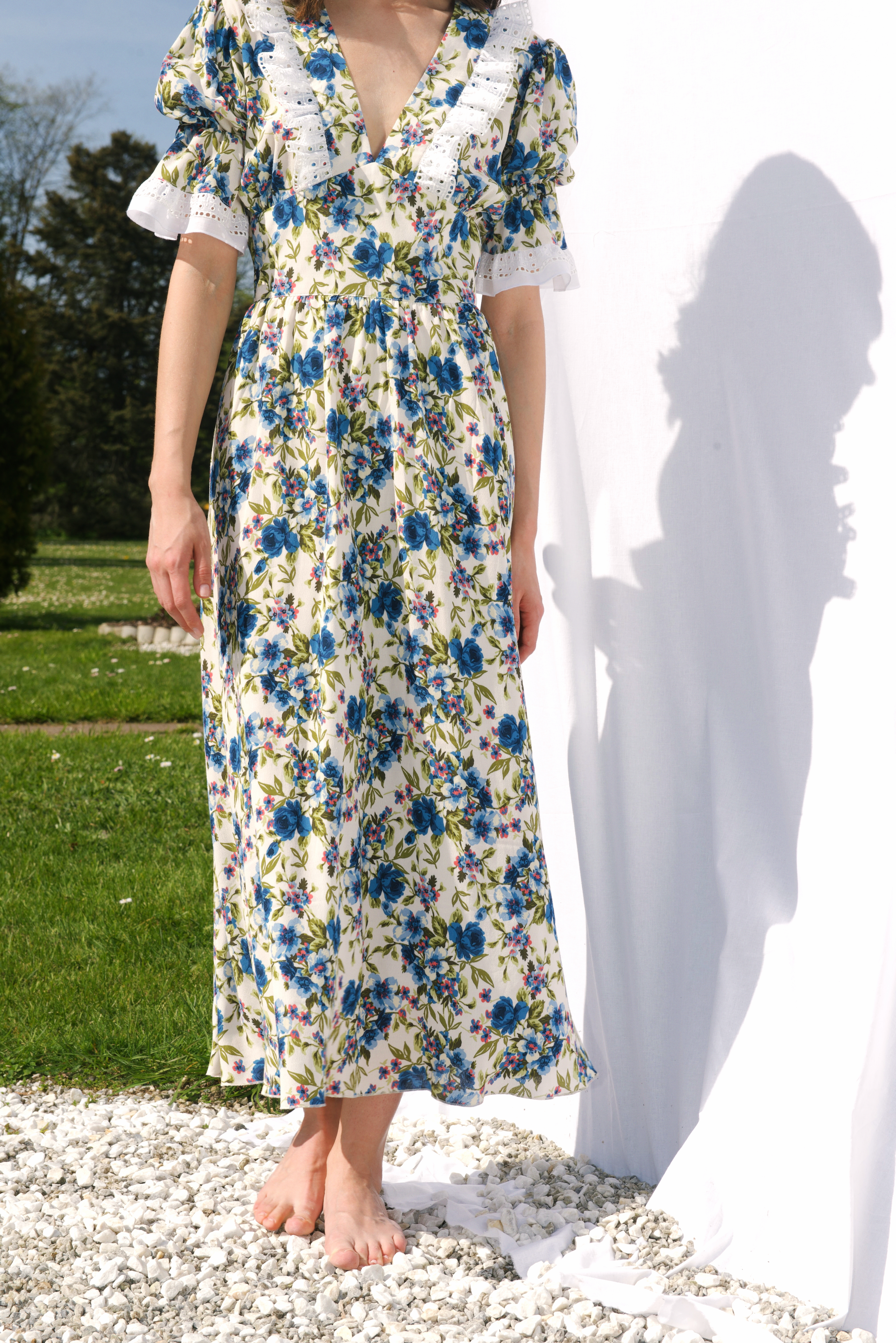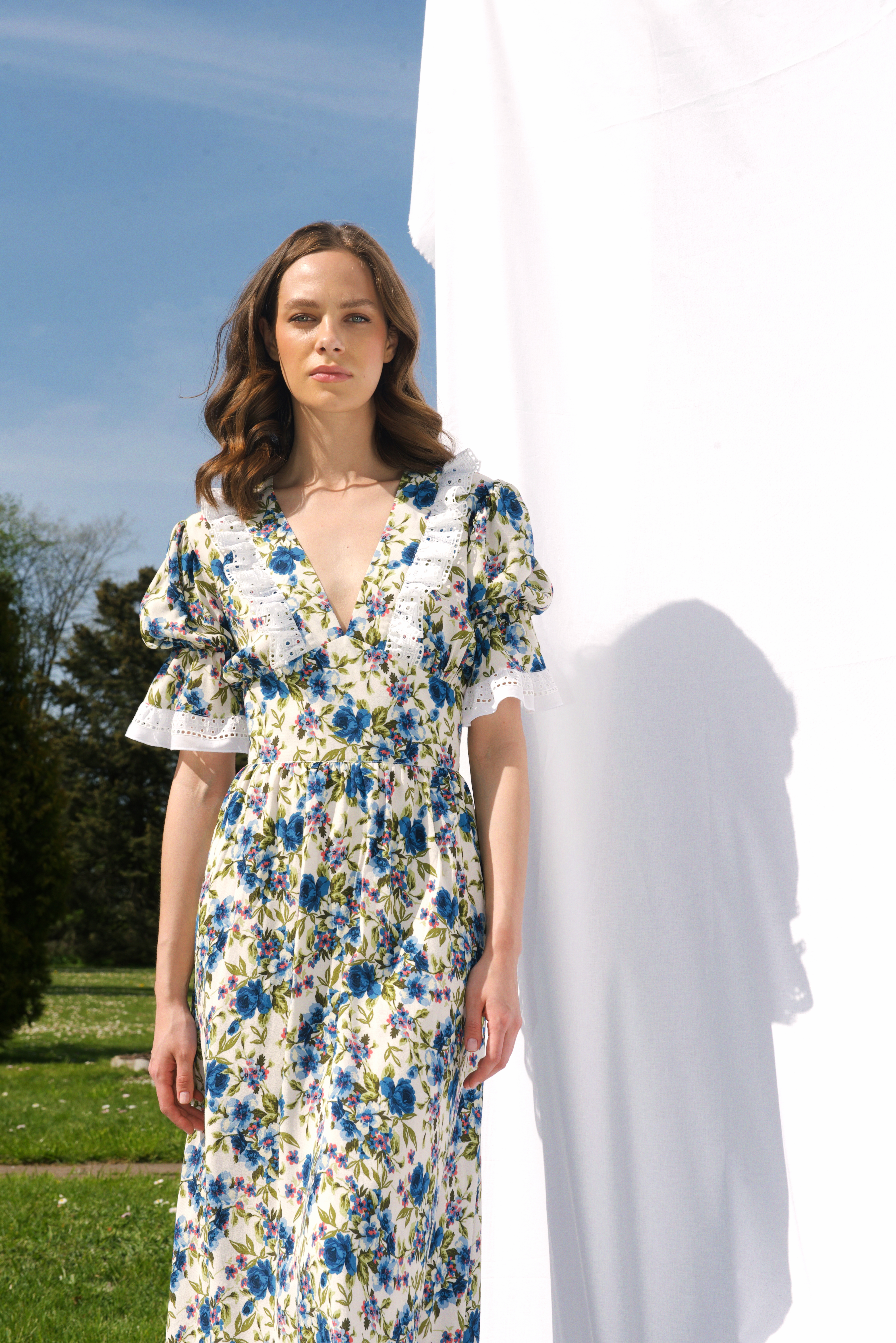 Россыпь эксклюзивного цветочного принта на невесомом итальянском хлопке в любимой модели платья, декорированной шитьем.