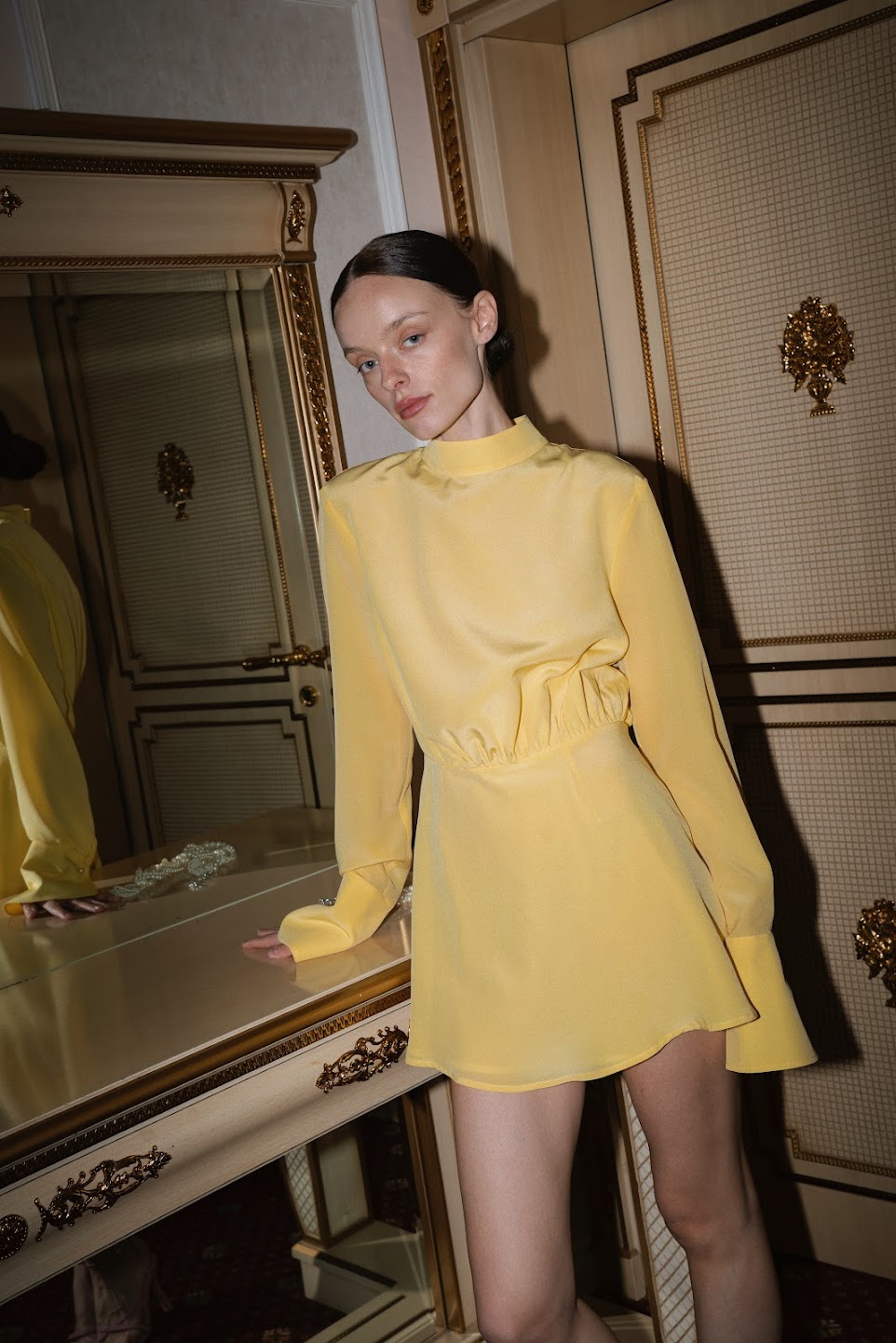 Платье из натурального итальянского шелка в трендовом светло- желтом оттенке в длине мини