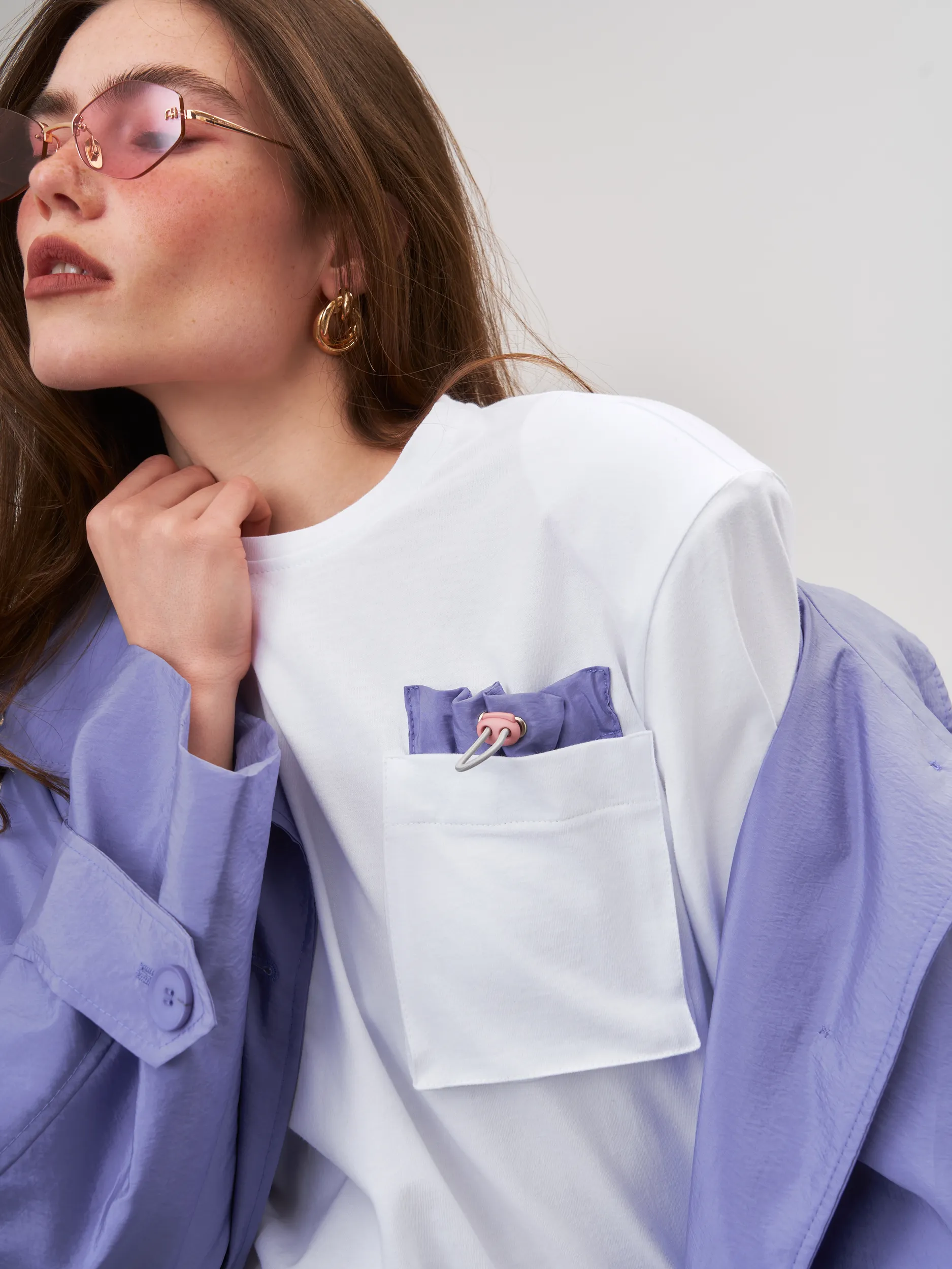 Футболка выполнена из премиального итальянского шлифованного хлопка, что обеспечивает невероятную мягкость и комфорт при носке. Особое внимание уделено деталям: эксклюзивный фиксатор, изготовленный из итальянской плащевки, придаёт модели уникальный стиль и функциональность.