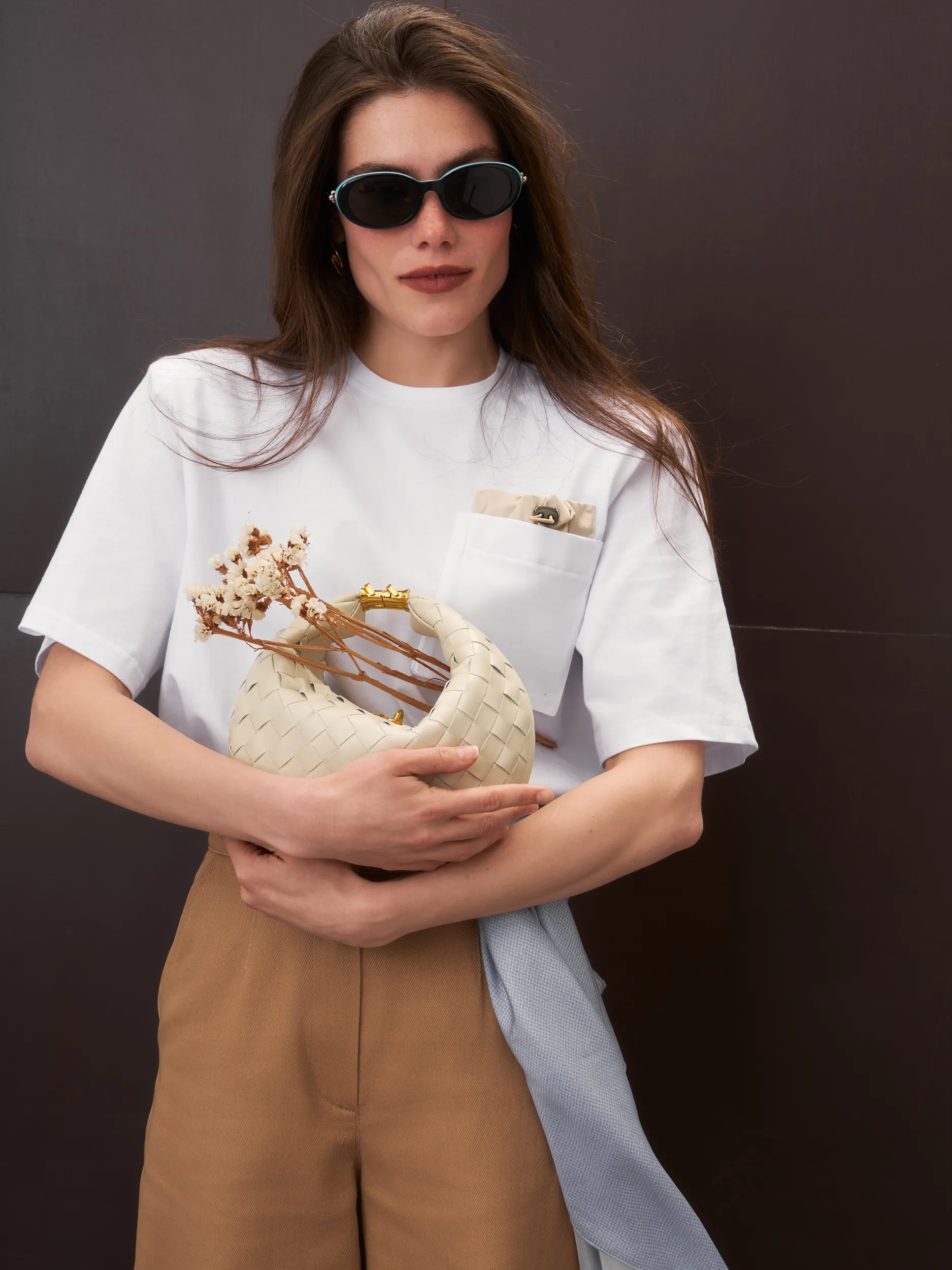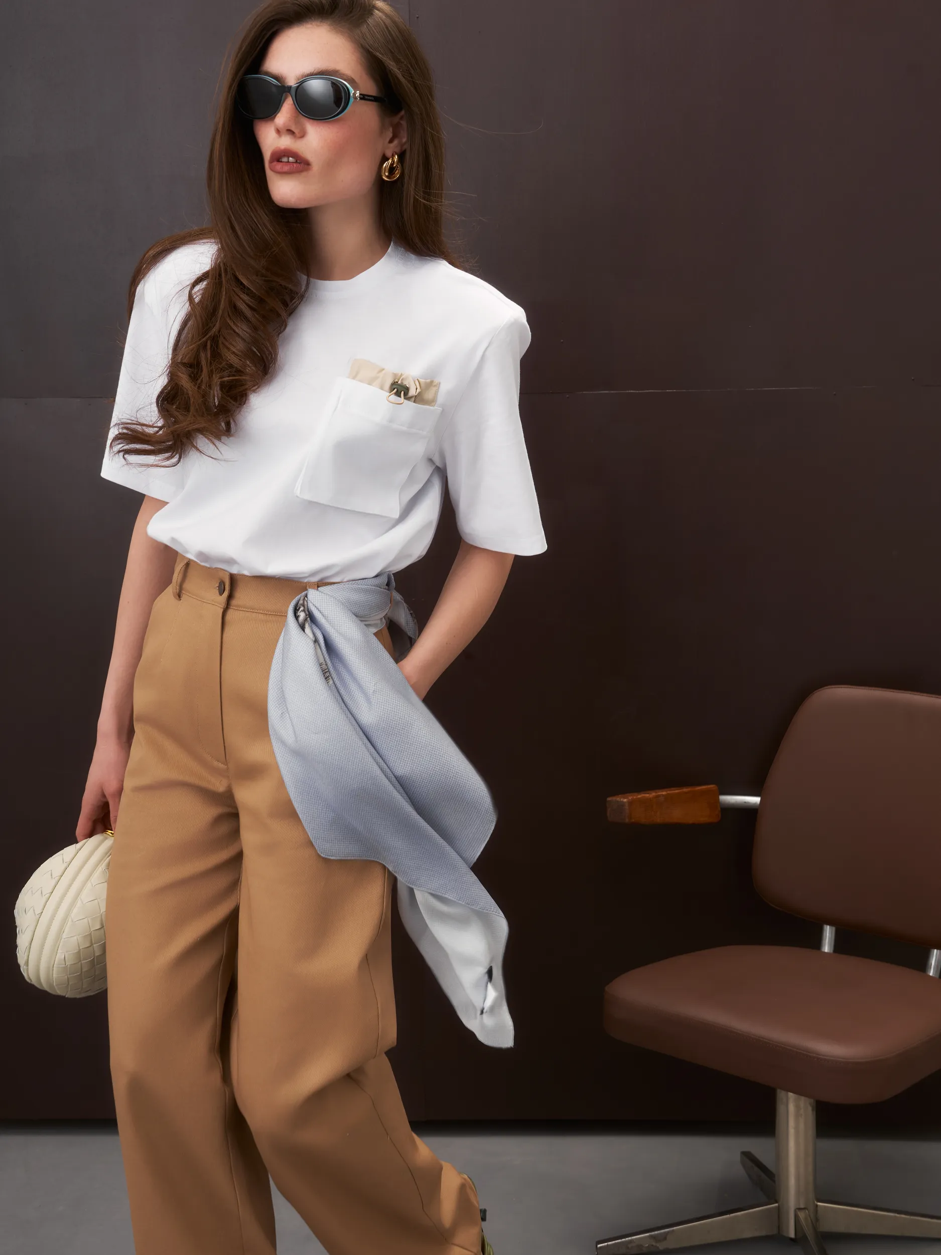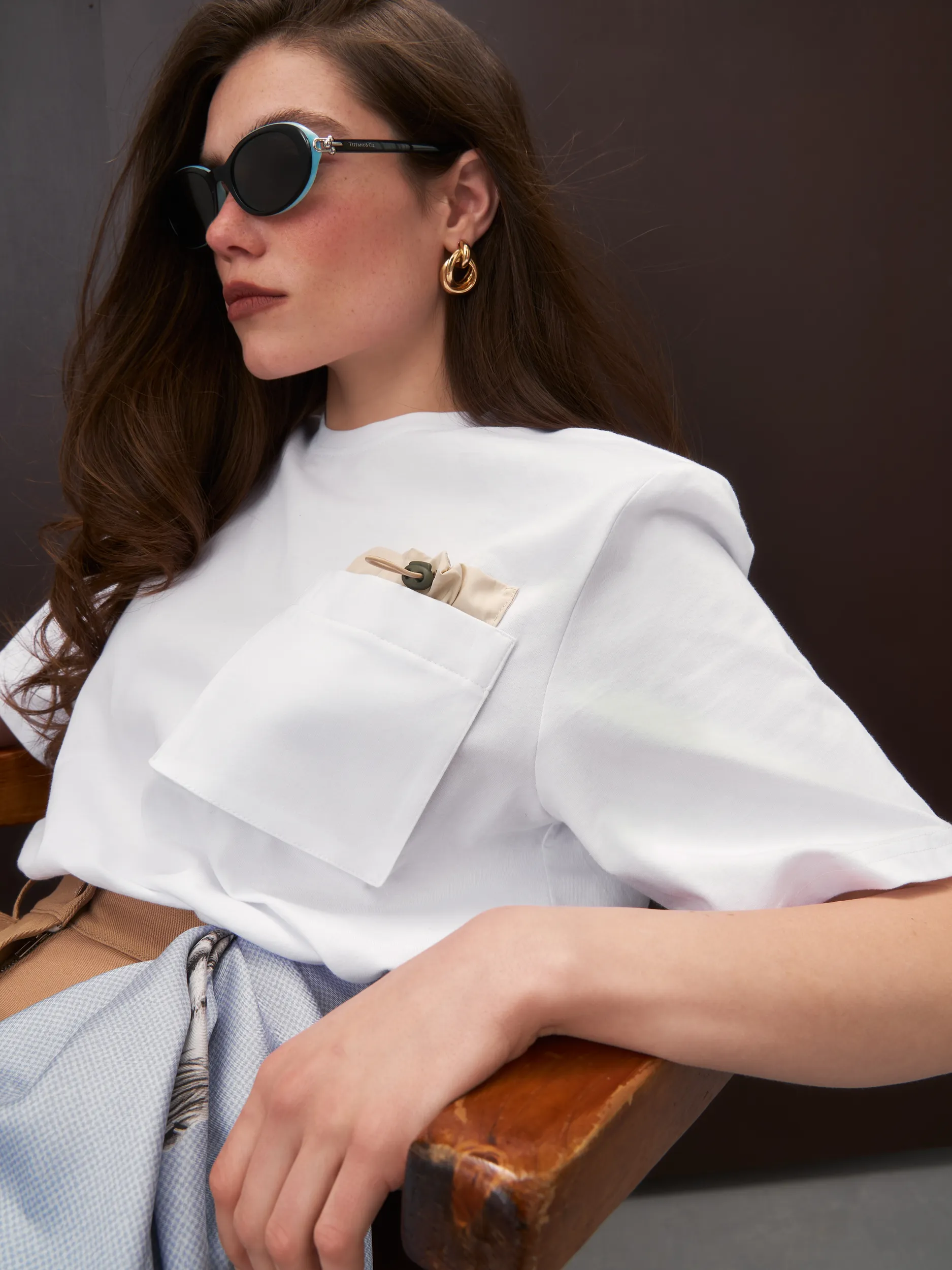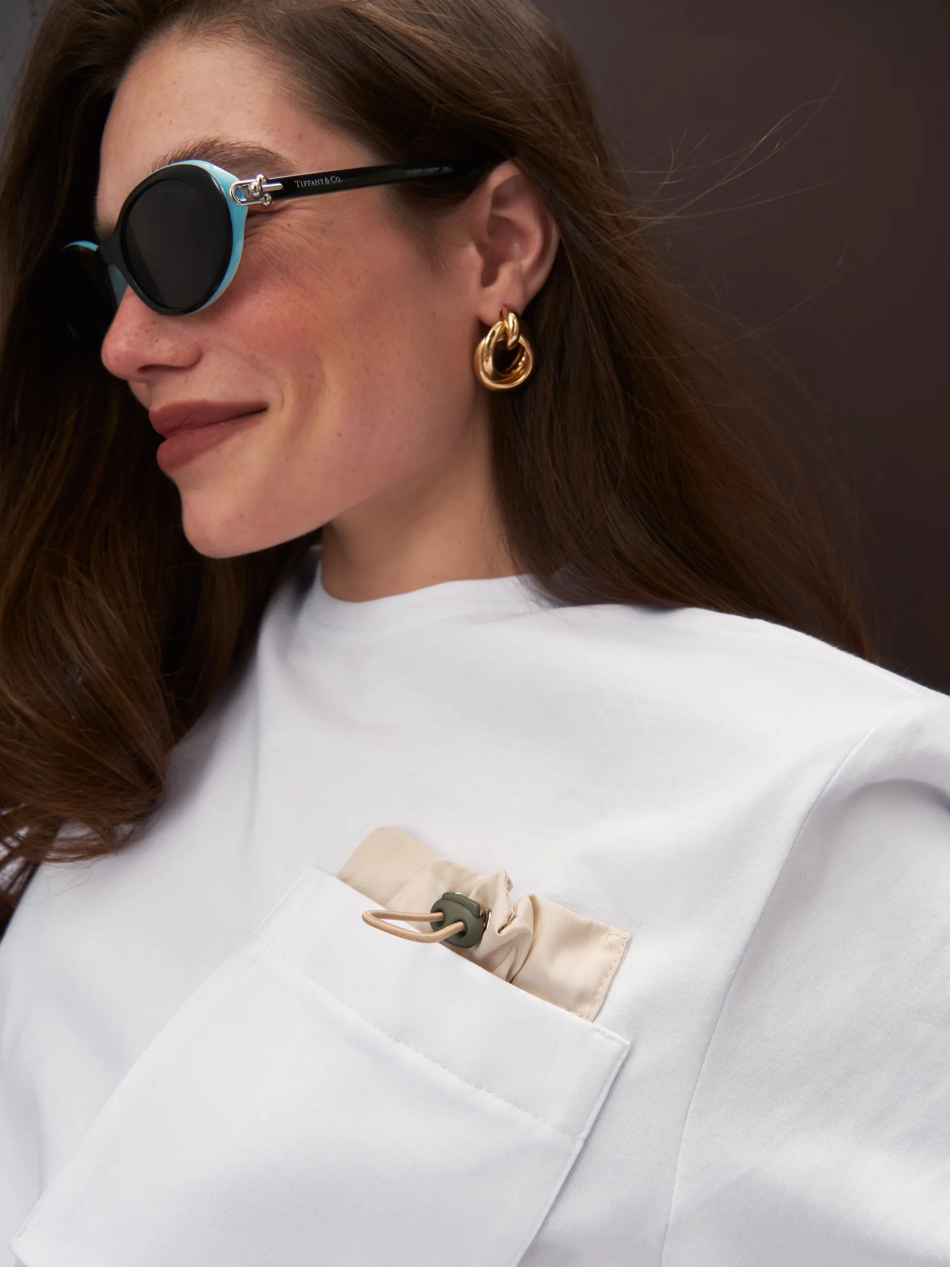 Футболка выполнена из премиального итальянского шлифованного хлопка, что обеспечивает невероятную мягкость и комфорт при носке. Особое внимание уделено деталям: эксклюзивный фиксатор, изготовленный из итальянской плащевки, придаёт модели уникальный стиль и функциональность.