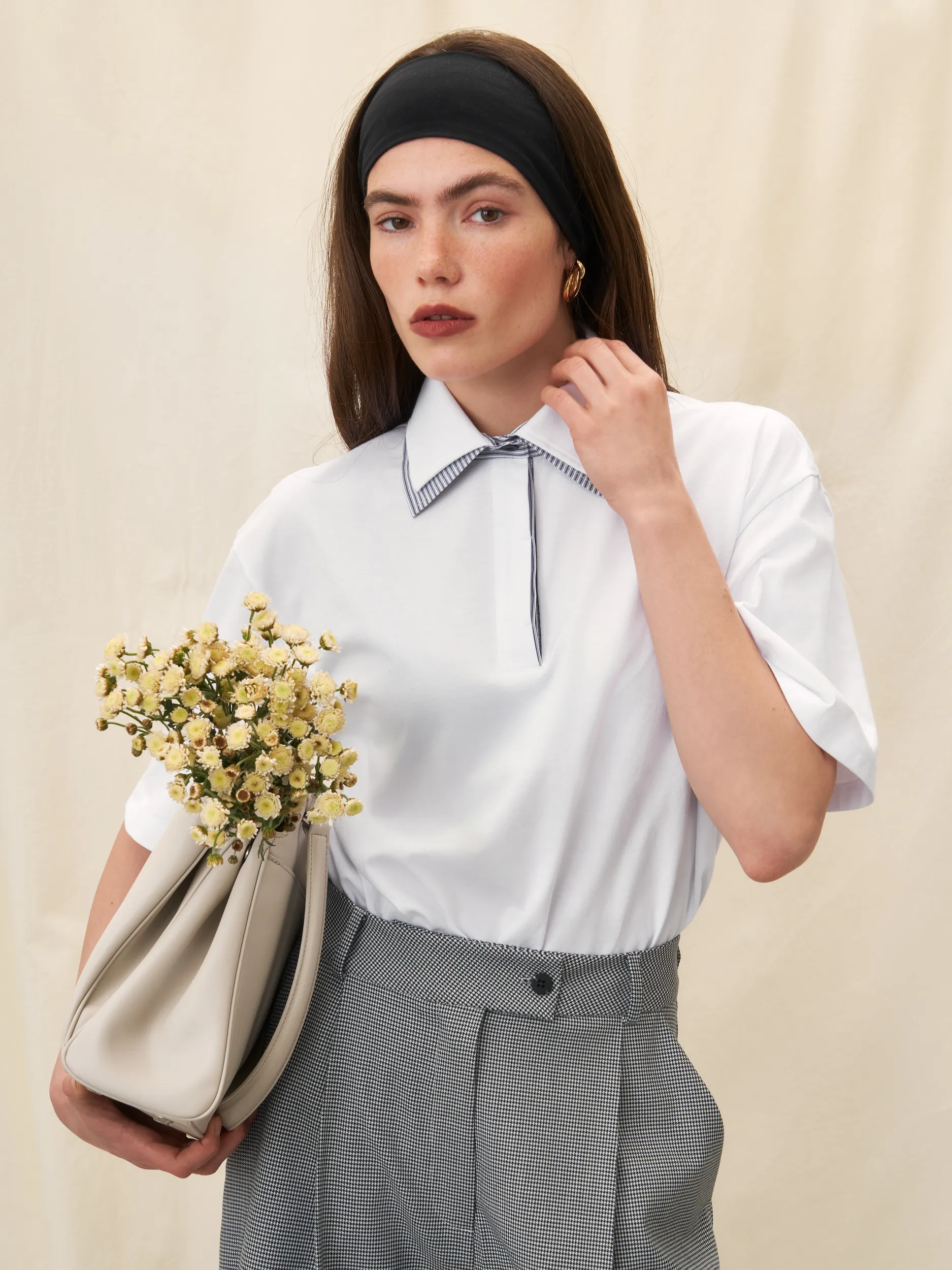 Футболка поло из премиального итальянского шлифованного хлопка в синюю полоску
