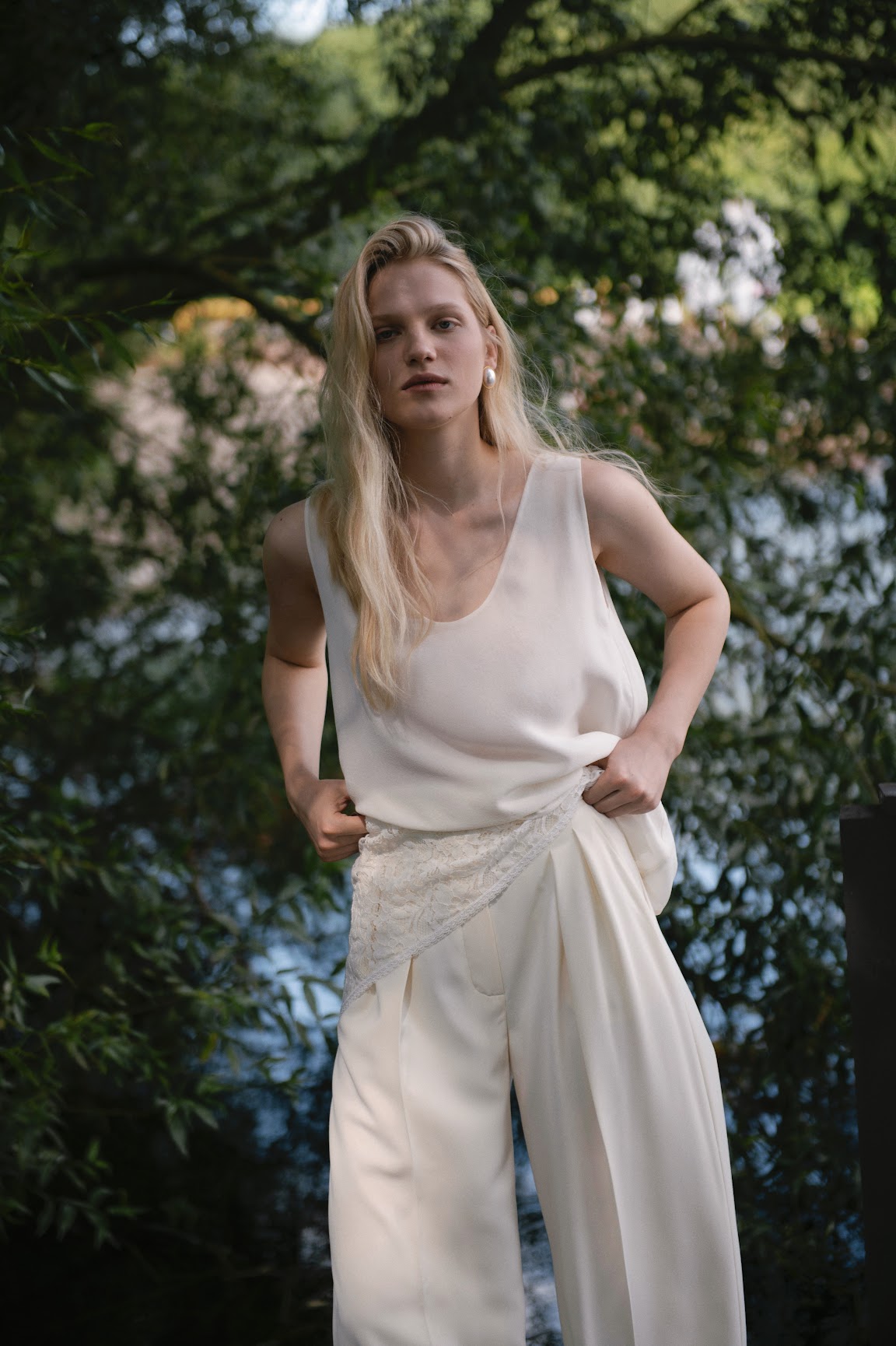 Топ с округлым вырезом из натурального двойного итальянского шелка люкс класса