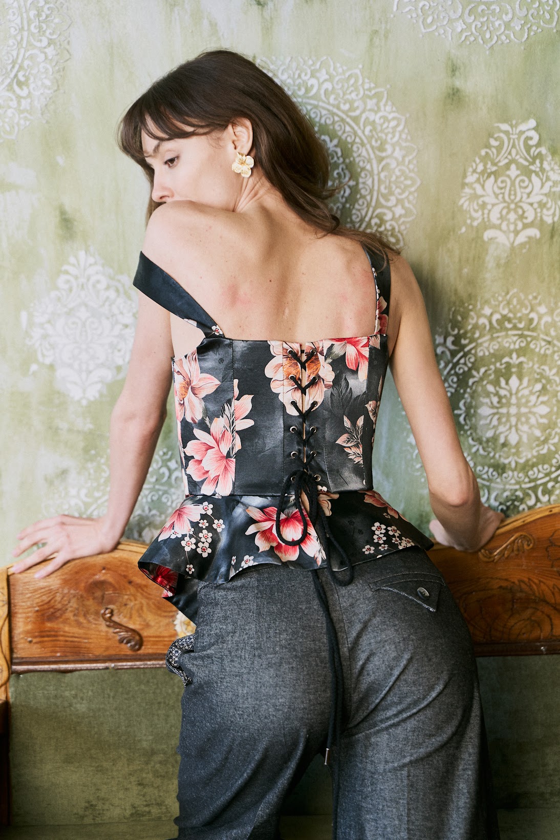 Корсет из итальянского хлопка, который изящно подчёркивает силуэт. Цветочный принт добавляет образу романтичности и отражает один из актуальных трендов сезона 2026.
