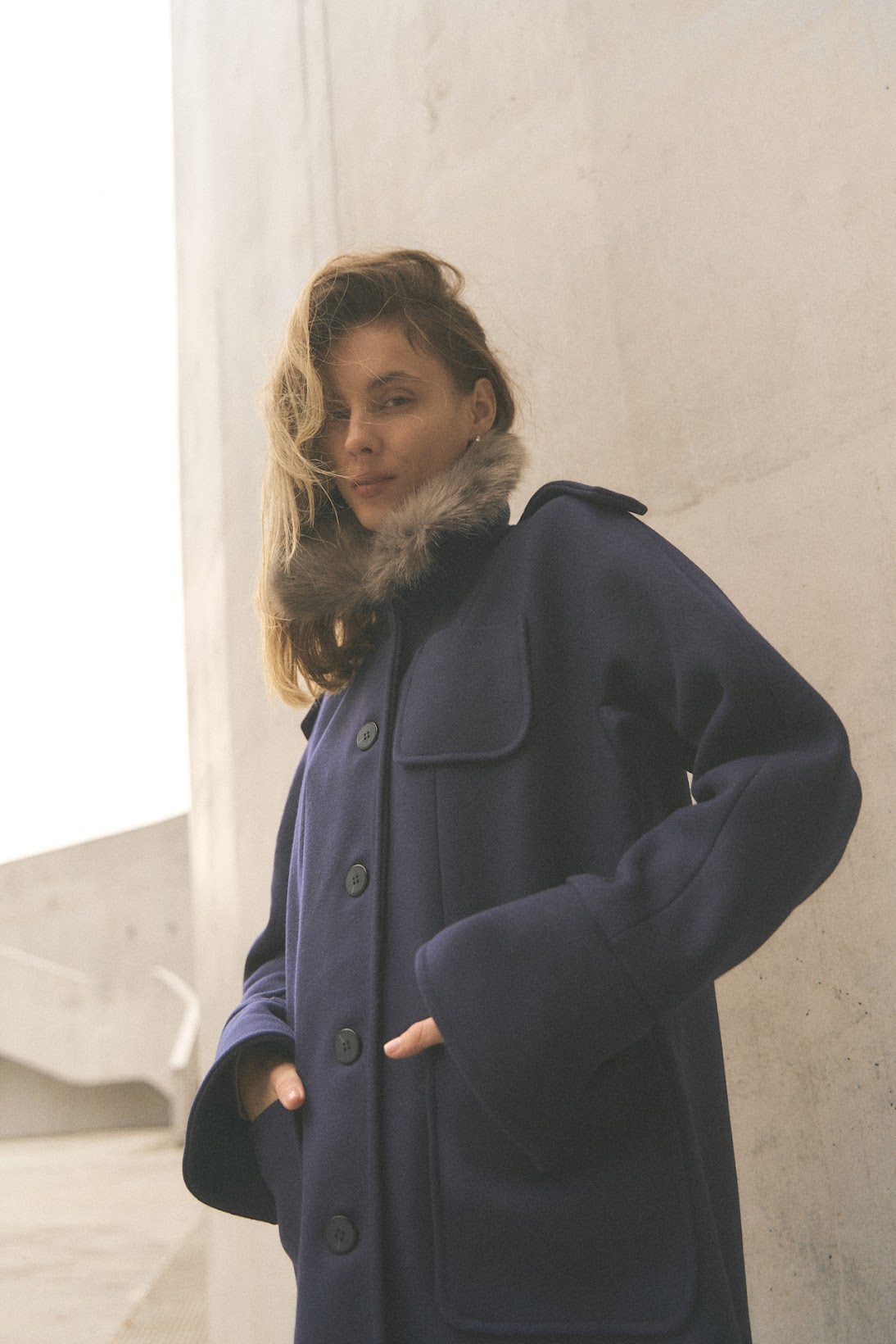 Пальто в трендовом оттенке выполнено из итальянской шерсти класса люкс в длине макси. Однобортный прямой силуэт. Накладные карманы. Двойные дизайнерские манжеты. Акцентный съемный меховой воротник из длинноворсового итальянского меха - выразительный штрих и тренд сезона.