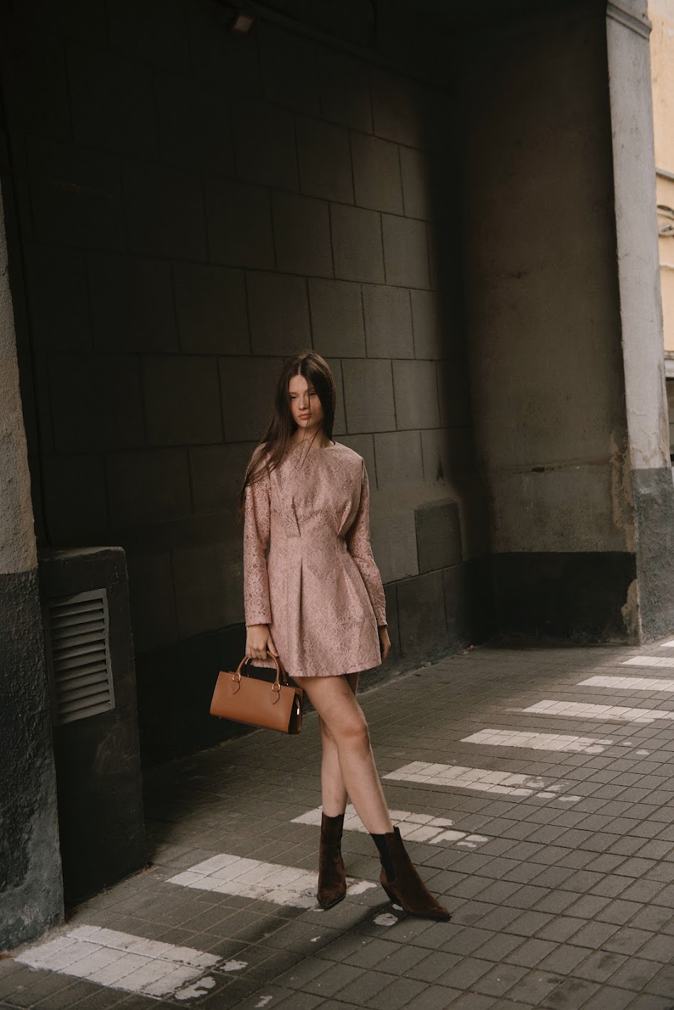 Платье из итальянского кружева цвета пыльной розы на основе хлопка в двух вариациях длины. Приталенный силуэт, защипы на талии, подиумный полупрозрачный эффект кружева - тренд сезона 24/25. И две самые актуальные длины сезона - мини и макси.