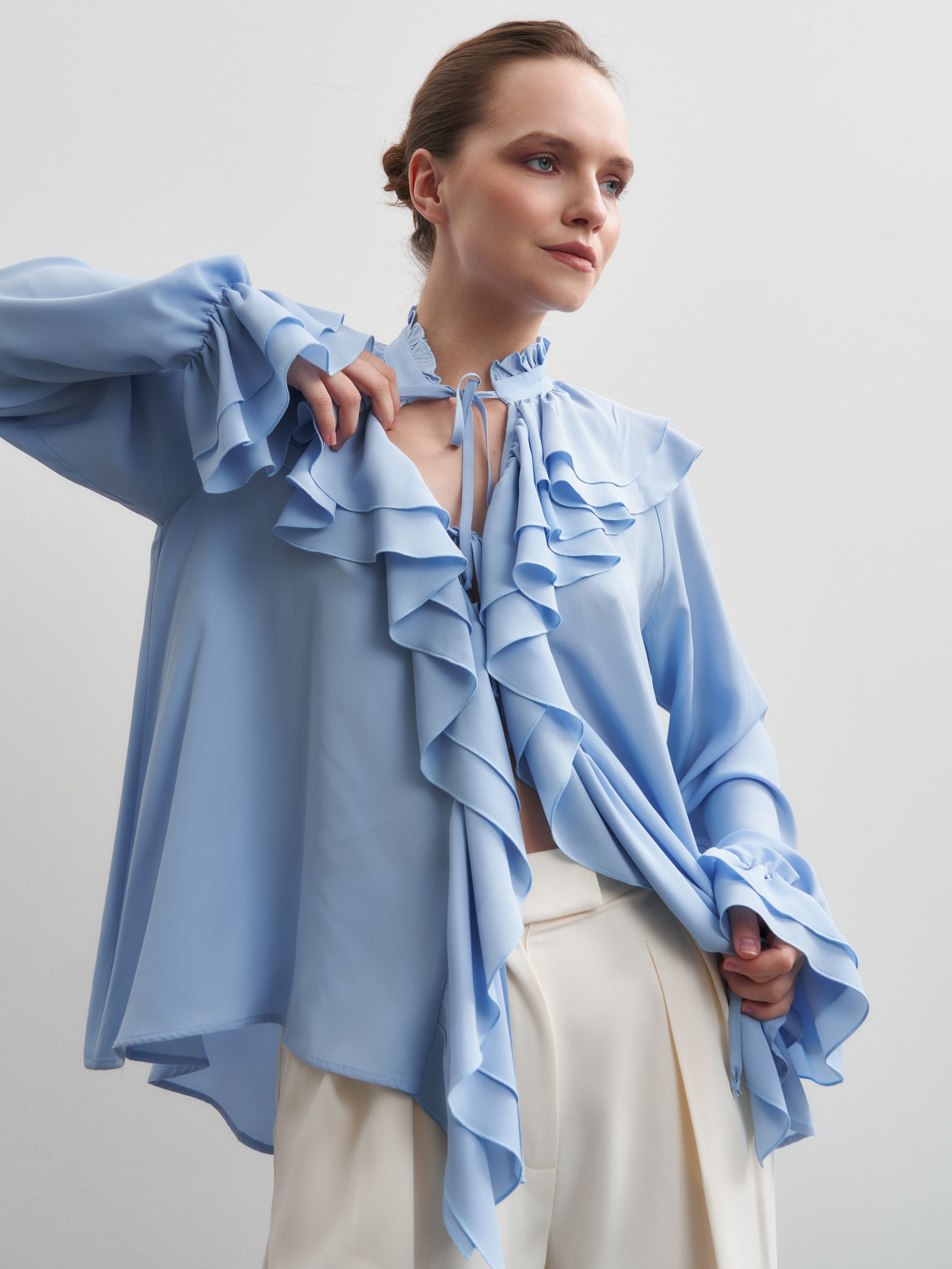 Блуза с рюшами из натурального итальянского шелка с добавлением ацетата