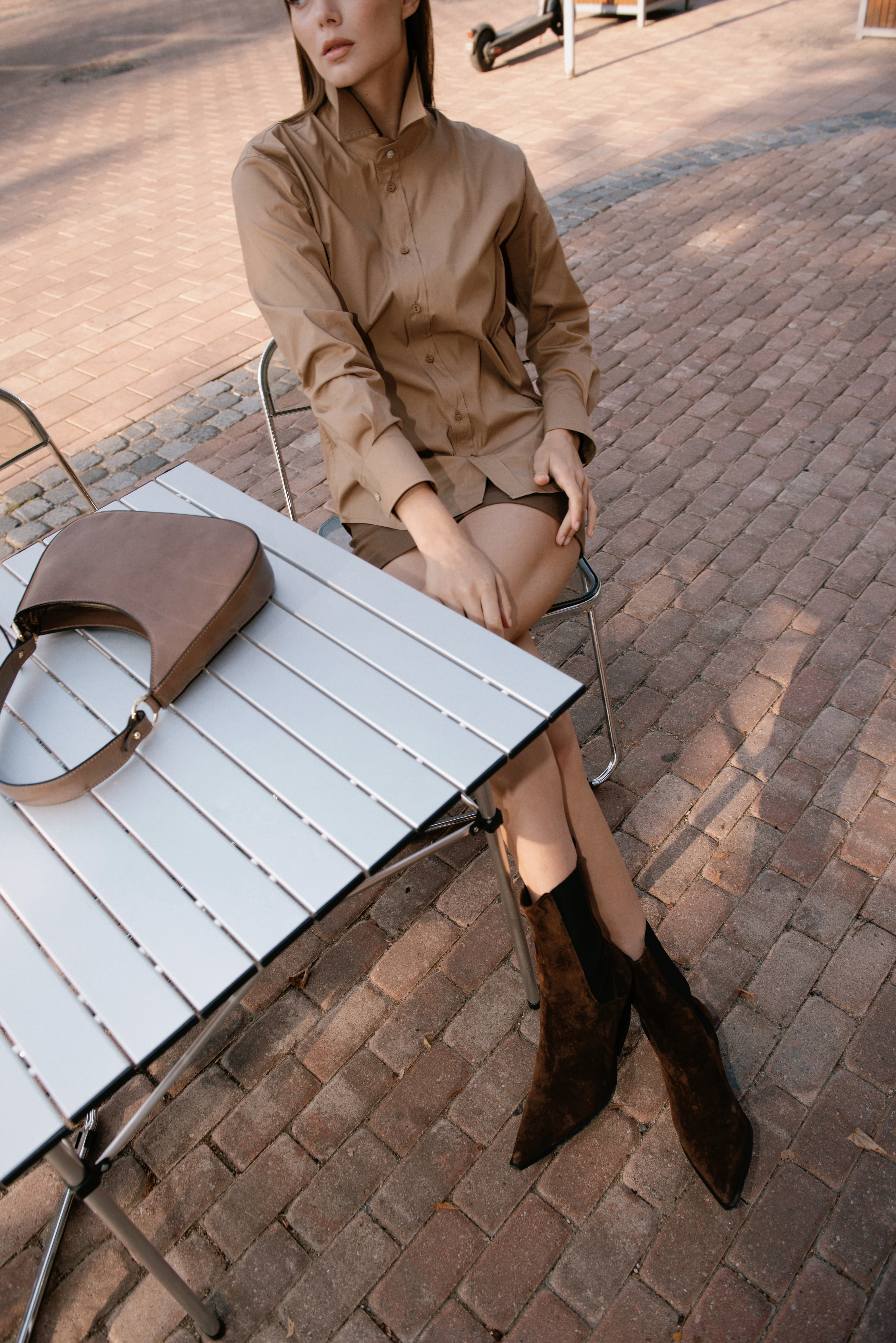 Новый силуэт рубашек со сложными фигурными манжетами и двойной кокеткой, закрытым швом и декоративными акцентными пуговицами с натуральным перламутром. Итальянский шлифованный хлопок.