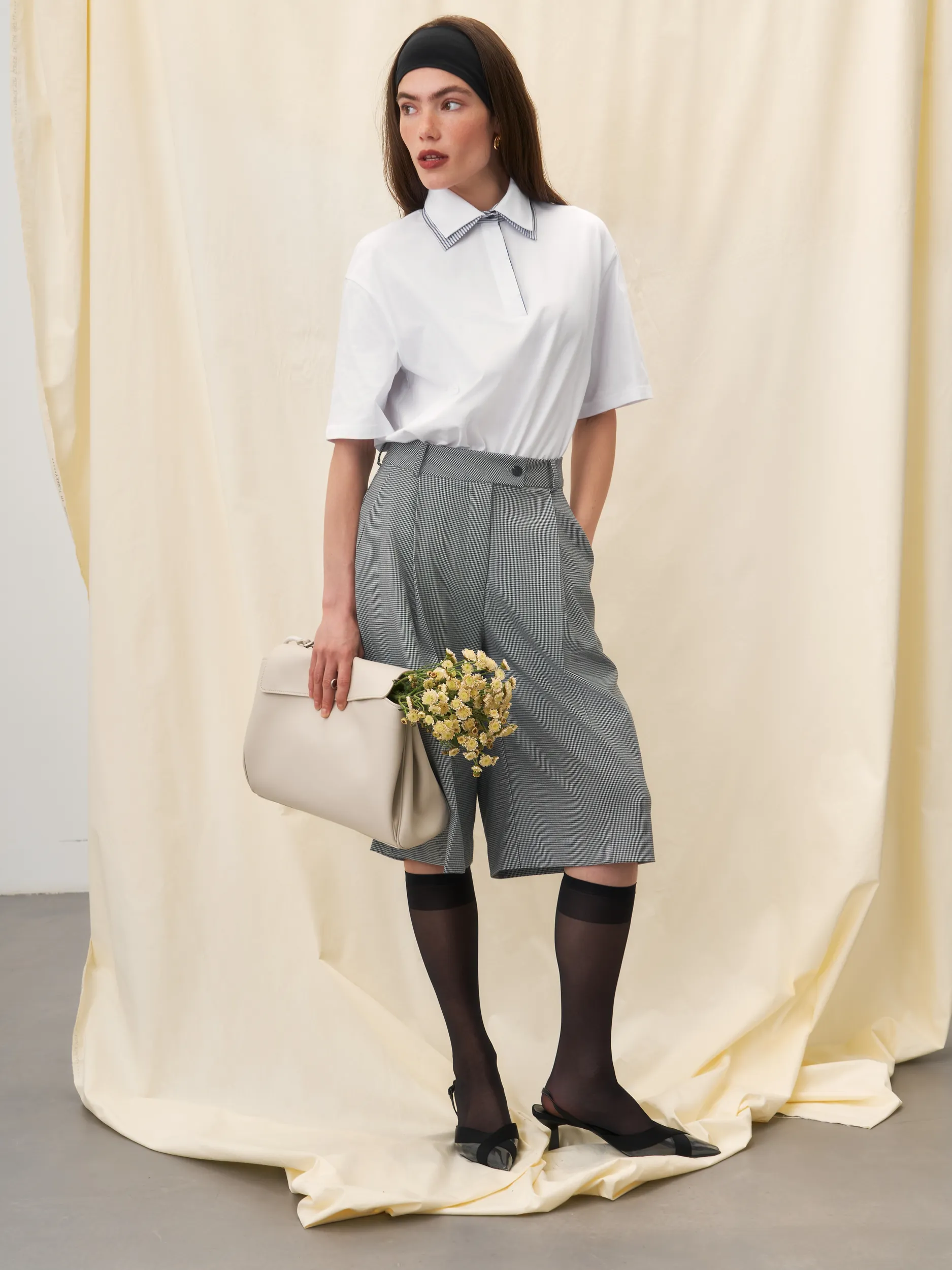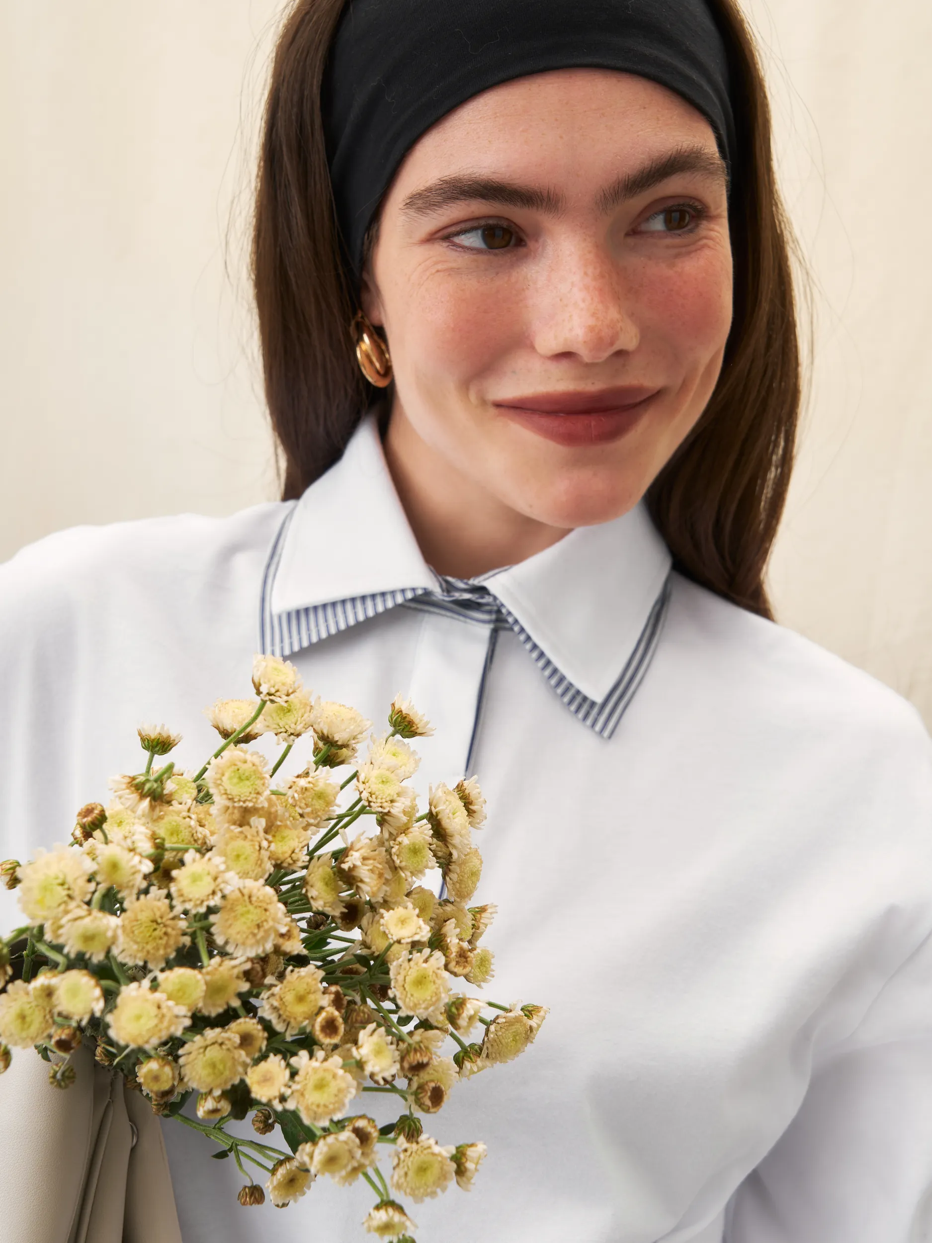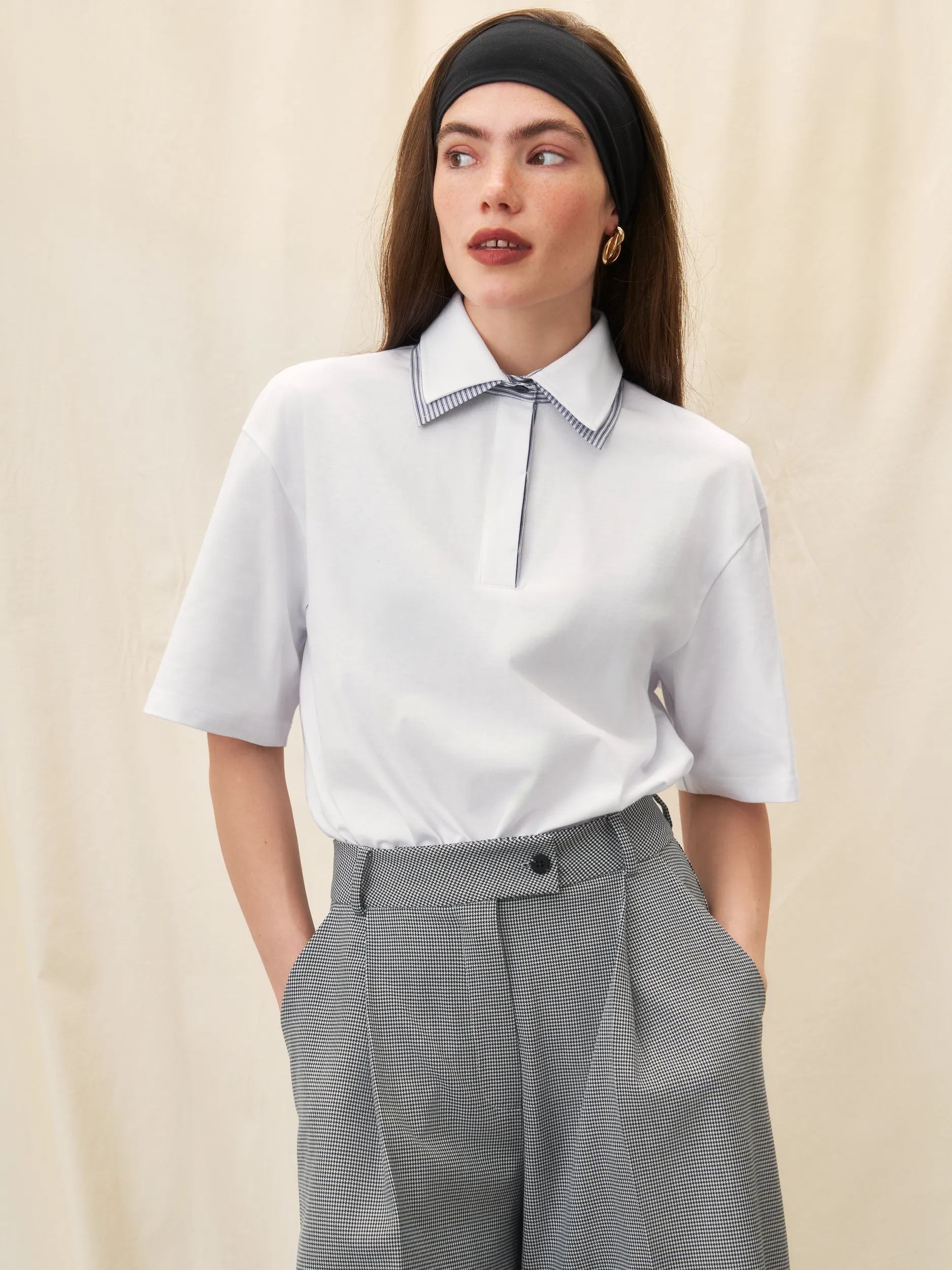 Футболка поло из премиального итальянского шлифованного хлопка в синюю полоску